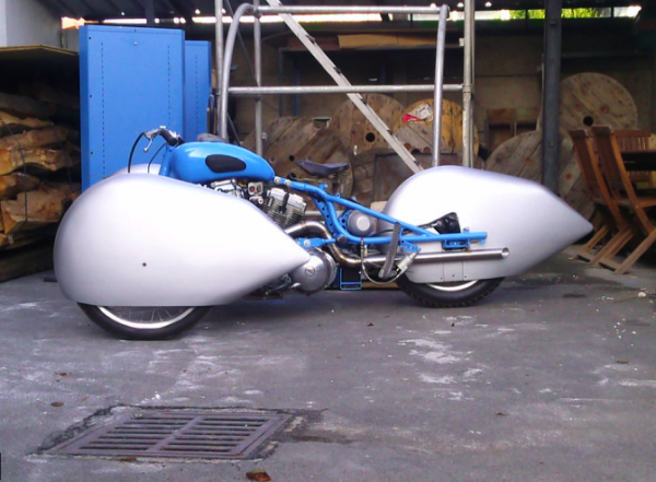 Le trike se fait une petite phase de finition avec un programme de pinstriping des carénages de roue, réservoir... chez Alaix.