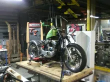 Modification Bobber sportster: réservoir, passage au marbre pour hardtail KRD avec stretch + 4' et drop -1,5', guidon KRD, selle Seb cycles ...
