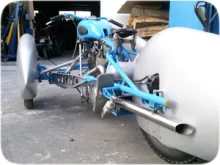 Le trike se fait une petite phase de finition avec un programme de pinstriping des carénages de roue, réservoir... chez Alaix.